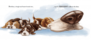 Berkley, A Nose Tale is a funny story about a dog who is a little different. Berkley is always sticking his nose where it does not belong. He is a beagle and basset hound mix, possessing the biggest sniffer in the litter. His nose, however, comes to use when a cat is lost and he ends up saving the day.