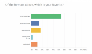 Paperback books were a winner by a long shot. Almost 90 percent of those surveyed listed paperbacks as one of their preferred formats and over half chose paperbacks as their favorite among all the choices. Hardcovers were also in demand, although less so. They are more durable than paperbacks but also more expensive and heavier to lug around. Paperbacks hit the sweet spot, meeting the desire to flip through physical pages while still being portable.