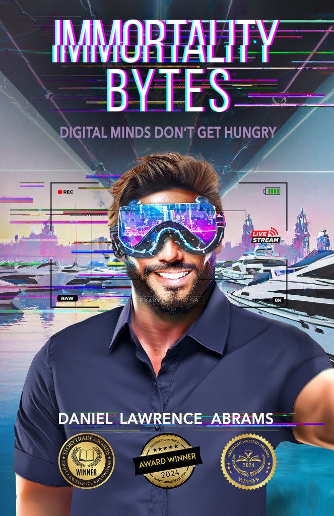 Daniel Lawrence Abrams’ debut novel, Immortality Bytes, is a ferociously clever, genre-blending cyberpunk satire that hits with the impact of a neural upload and the bite of political comedy at its sharpest. A winner of multiple prestigious awards—including “Best Science Fiction” and “Best Humor/Satire” from the 2024 American Fiction and Storytrade Awards—this book is as much a philosophical manifesto as it is a tech-thriller, pushing the boundaries of speculative fiction with unapologetic intelligence and irreverent charm.
