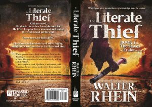 ‘The Literate Thief,’ deals with a world much like ours, but with the deterioration accelerated to the point of almost satire. The problem with good and evil, when you encounter it in the real world, is that good guys don’t wear white hats, and bad guys aren’t snarling beasts that breathe green, noxious fumes. In fact, in reality, the representatives of evil are often more attractive than their good counterparts.